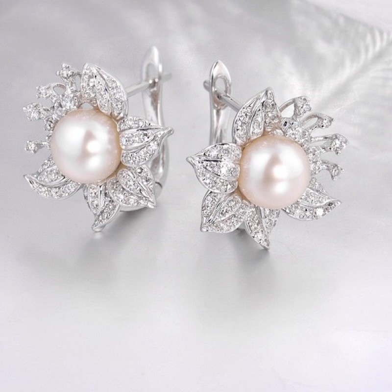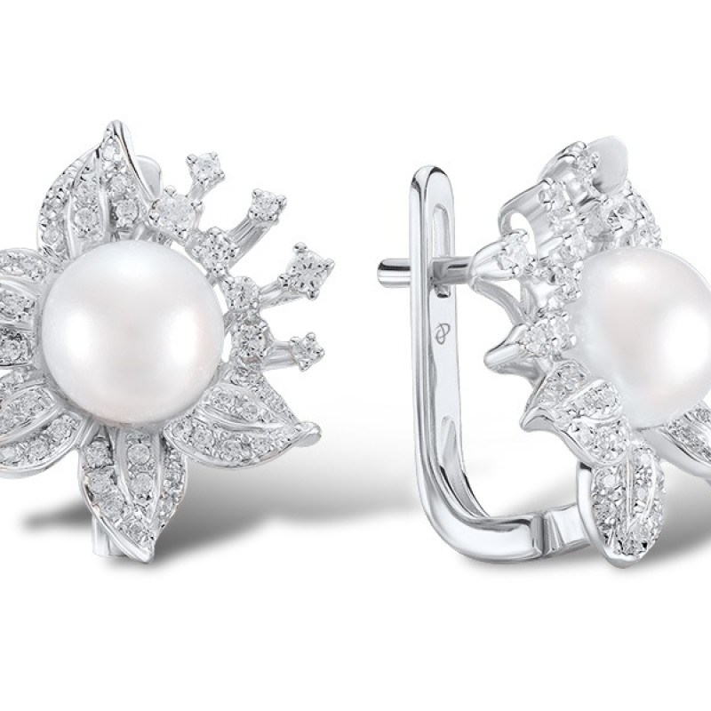 14KW Earrings Diamond,Fresh Water White Pearl (E303999FWP14KW)