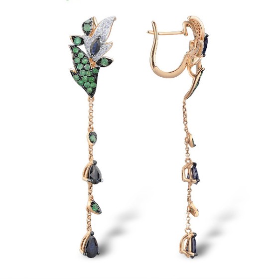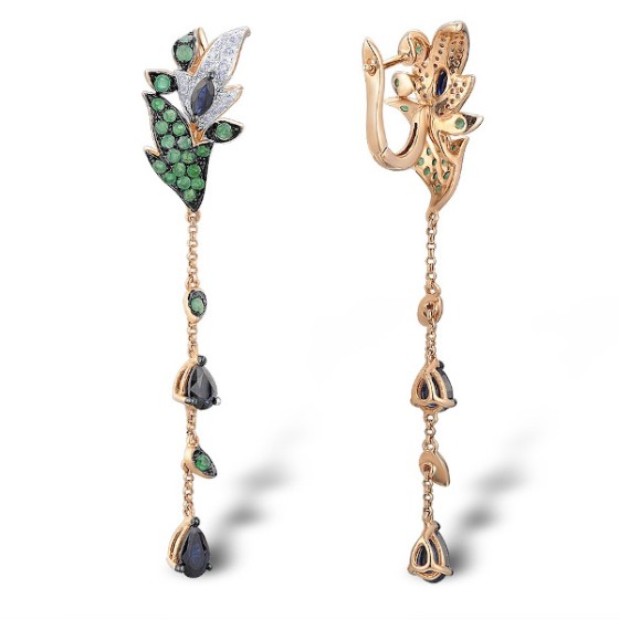14KRWB Earrings Diamond,Emerald,Blue Sapphire (E304099EMS14KRWB)