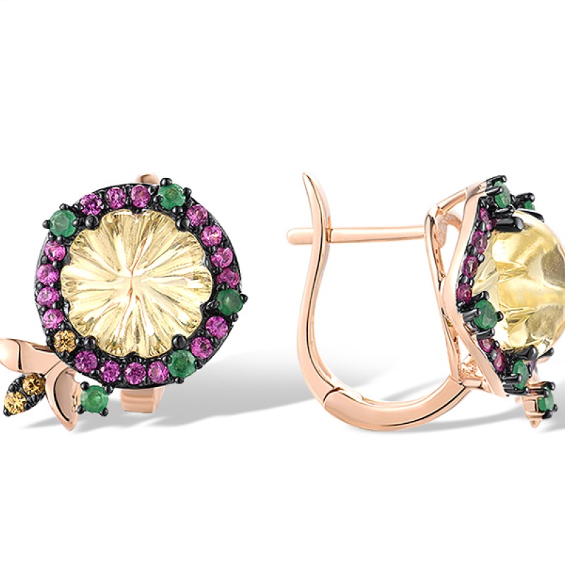 14KRB Earrings Pink Sapphire,Yellow Sapphire,Emerald,Lemon Quartz (E304157MUL14KRB)