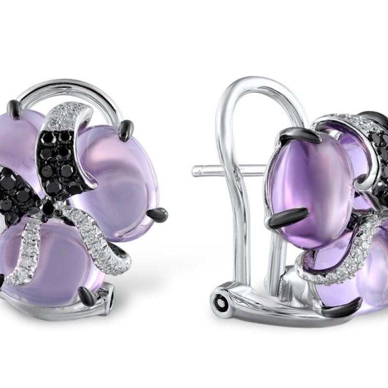14KWB Earrings Diamond,Amethyst,Black Diamond (E304172ABI14KWB)