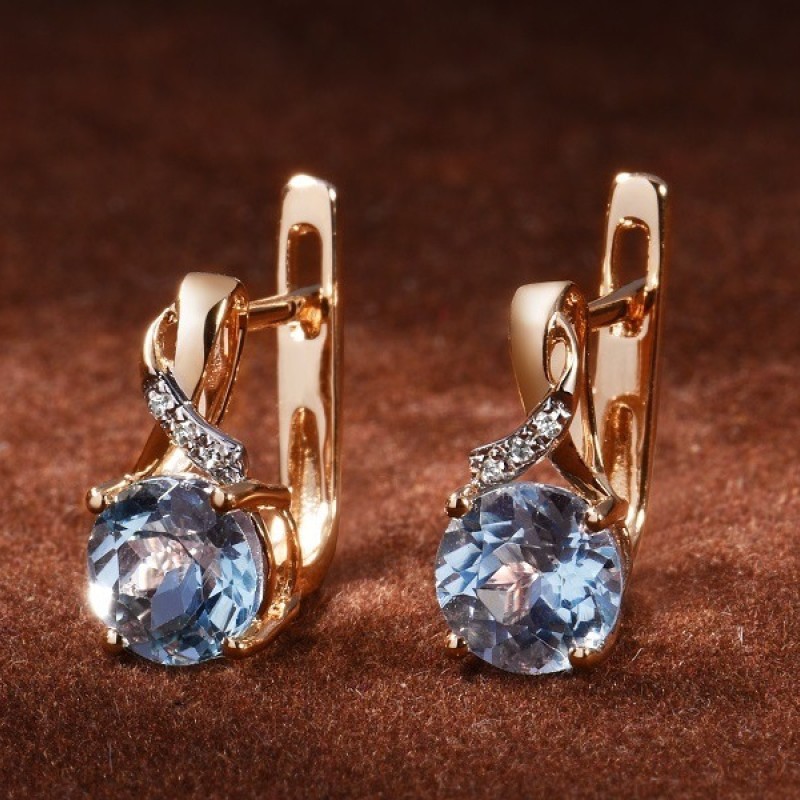 14KRW Earrings Diamond,Blue Topaz (Sky Blue) (E304363BKT14KRW)