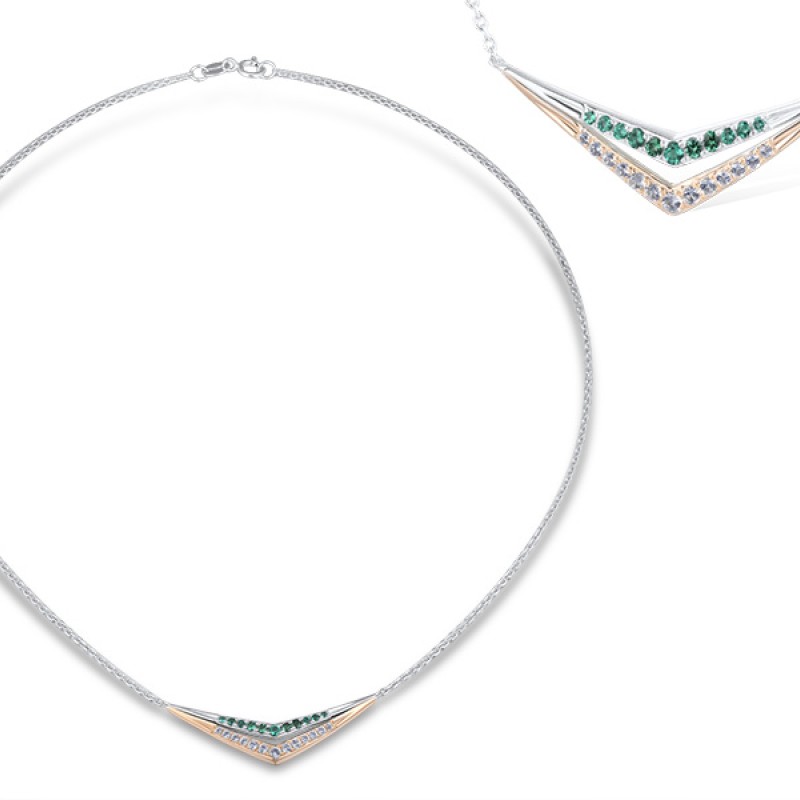 10KR + SL925 Necklace Created Emerald,White Sapphire (N309329CESR0SL)