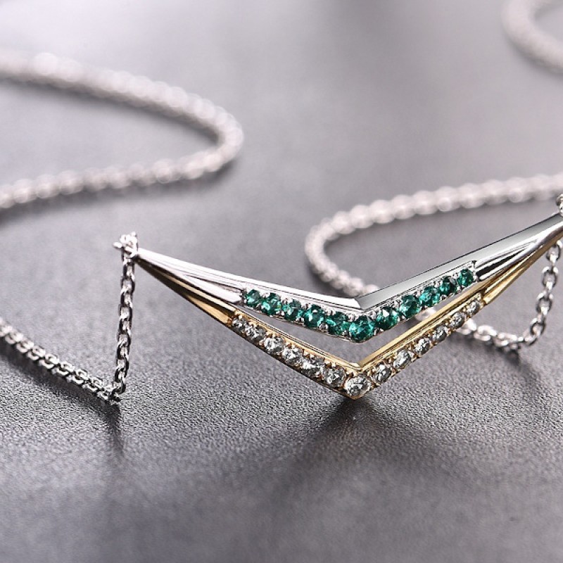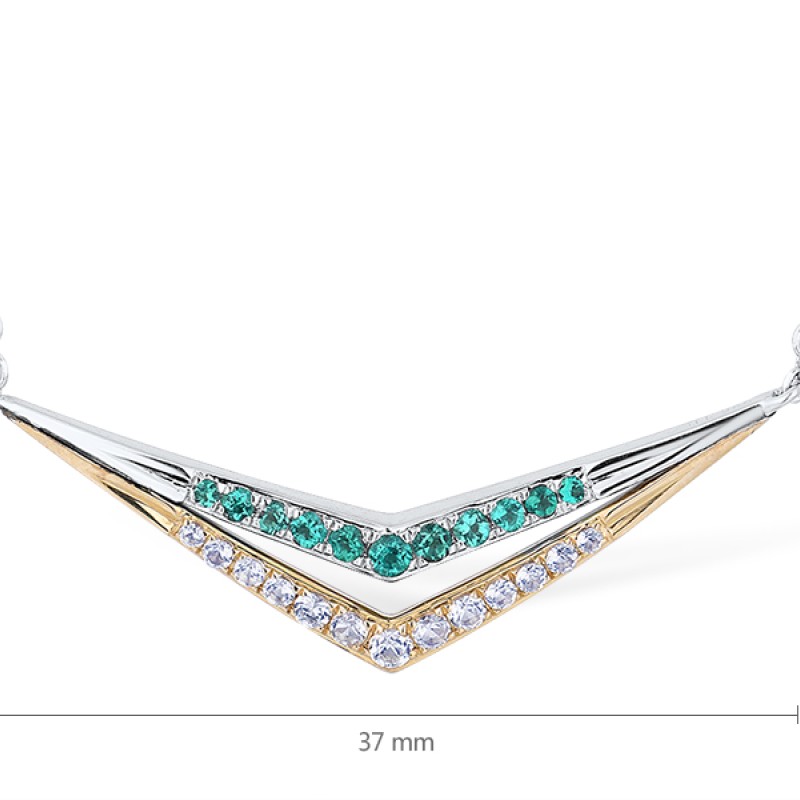 10KY + SL925 Necklace Created Emerald,Created white sapphire (N309329CEWY0SL)