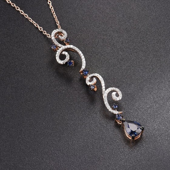 14KRWB Pendant Diamond,Blue Sapphire (P304134SAP14KRWB)