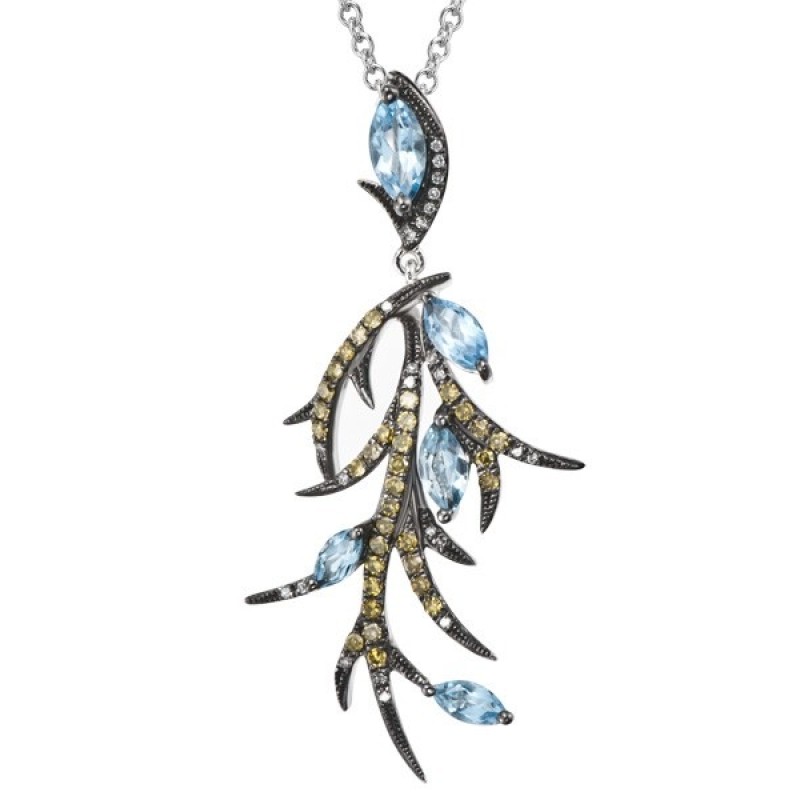 - Blue Topaz (Swiss Blue) 5pc 1.492ct ,Diamond 24pc 0.053ct ,Yellow Diamond 34pc 0.262ct