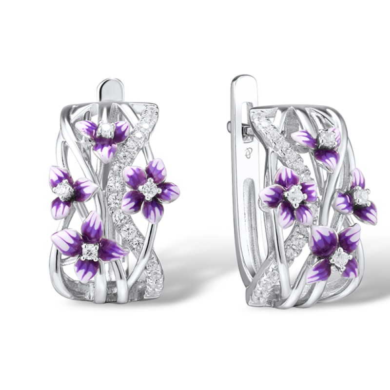 Sterling Silver Earrings Enamel,White Cubic Zirconia (E307546ENASL925)