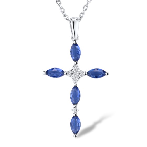 Sterling Silver Pendant Blue Glass,White Cubic Zirconia (P305595SBLGZSL925)