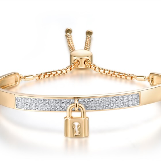 Sterling Silver w/ IONIC YELLOW PLATING Bangle Created white sapphire (G311634CWSSP925)