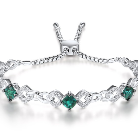 Sterling Silver w/ Yellow Black White Plating Bangle Created Emerald,Created white sapphire (G311505CEWSZ925)