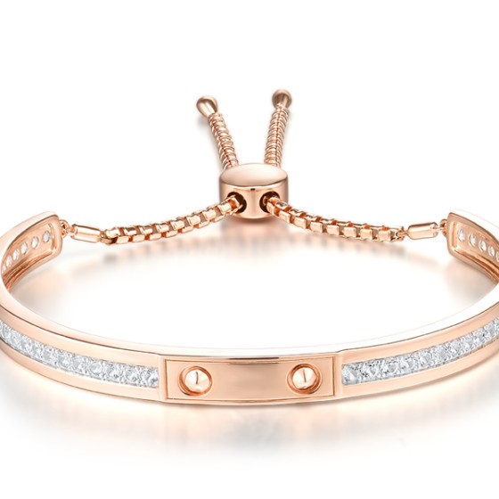 Sterling Silver w/ IONIC ROSE PLATING Bangle Created white sapphire (G311490CWSSQ925)