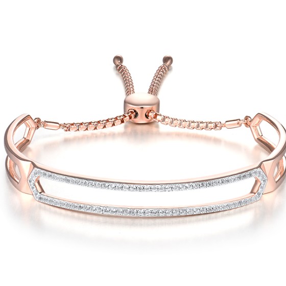 Sterling Silver w/ IONIC ROSE PLATING Bangle Created white sapphire (G311464CWSSQ925)