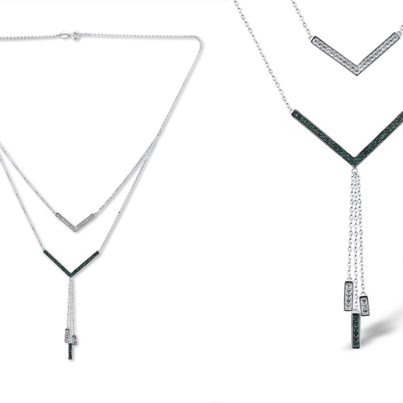 Sterling Silver w/ Black White Plating Necklace Created Emerald,Created white sapphire (N311455CEWSK925)