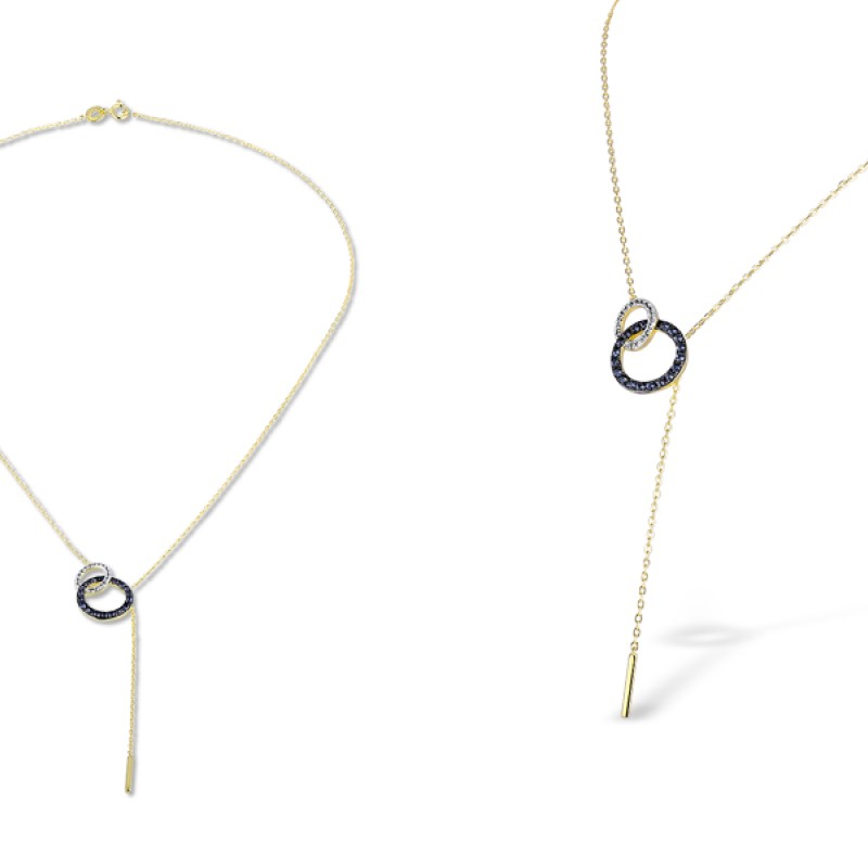 Sterling Silver w/ Yellow Black White Plating Necklace Created Sapphire,Created white sapphire (N311451CSWSZ925)