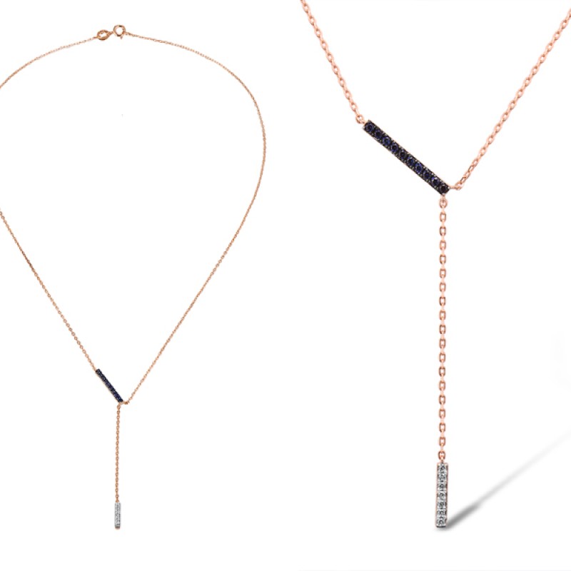 Sterling Silver w/ Rose Black White Plating Necklace Created Sapphire,Created white sapphire (N311450CSWSV925)
