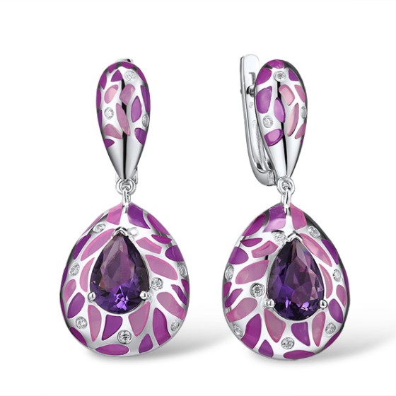 Sterling Silver Earrings Enamel,Purple Glass,White Cubic Zirconia (E309140AENASL925)