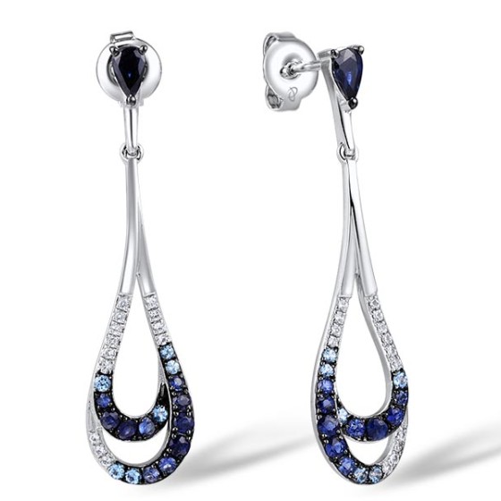 Sterling Silver w/ Black White Plating Earrings Blue Sapphire,Blue Topaz - SIGNITY,White Sapphire (E307424SBSAWSK925)