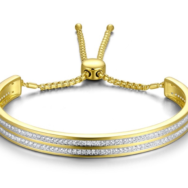 Sterling Silver w/ IONIC YELLOW PLATING Bangle Created white sapphire (G311466CWSSP925)