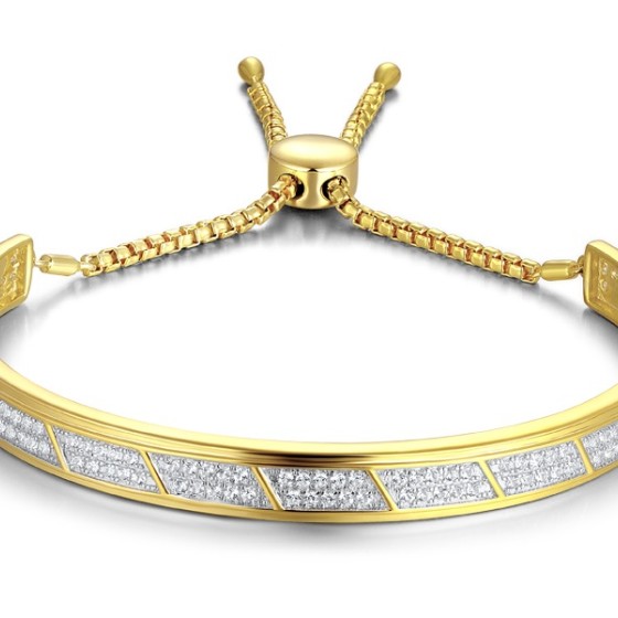Sterling Silver w/ IONIC YELLOW PLATING Bangle Created white sapphire (G311468CWSSP925)