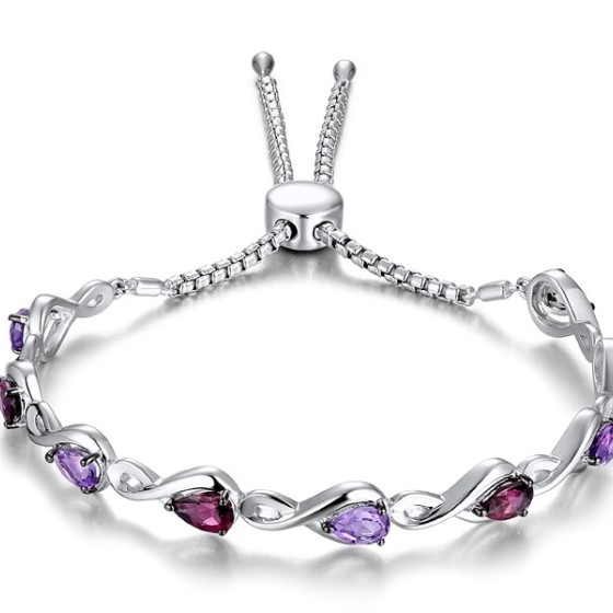 Sterling Silver w/ Black White Plating Bangle Rhodolite Garnet,Amethyst (G311498AMRSK925)