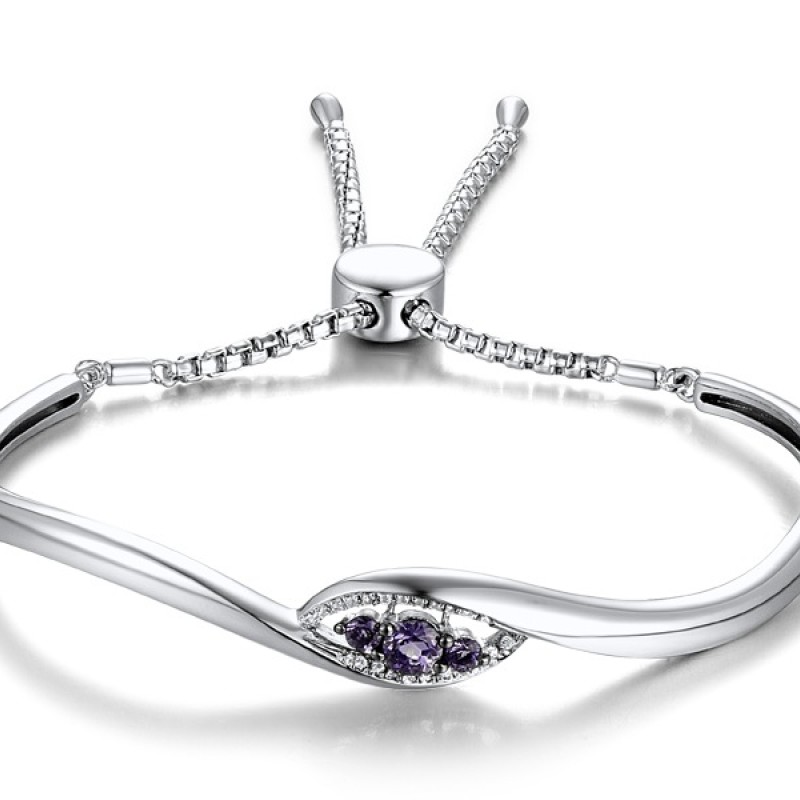 Sterling Silver w/ Black White Plating Bangle Amethyst,White Topaz (G311510AWTSK925)
