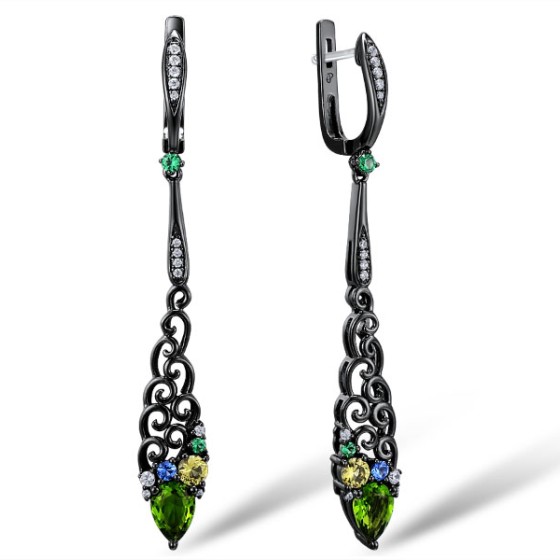 Sterling Silver w/ Black White Plating Earrings White Cubic Zirconia,Green Glass,Green Nano Cubic Zirconia (Per,Green Spinel,Blue Spinel (E308959MUL1SK925)