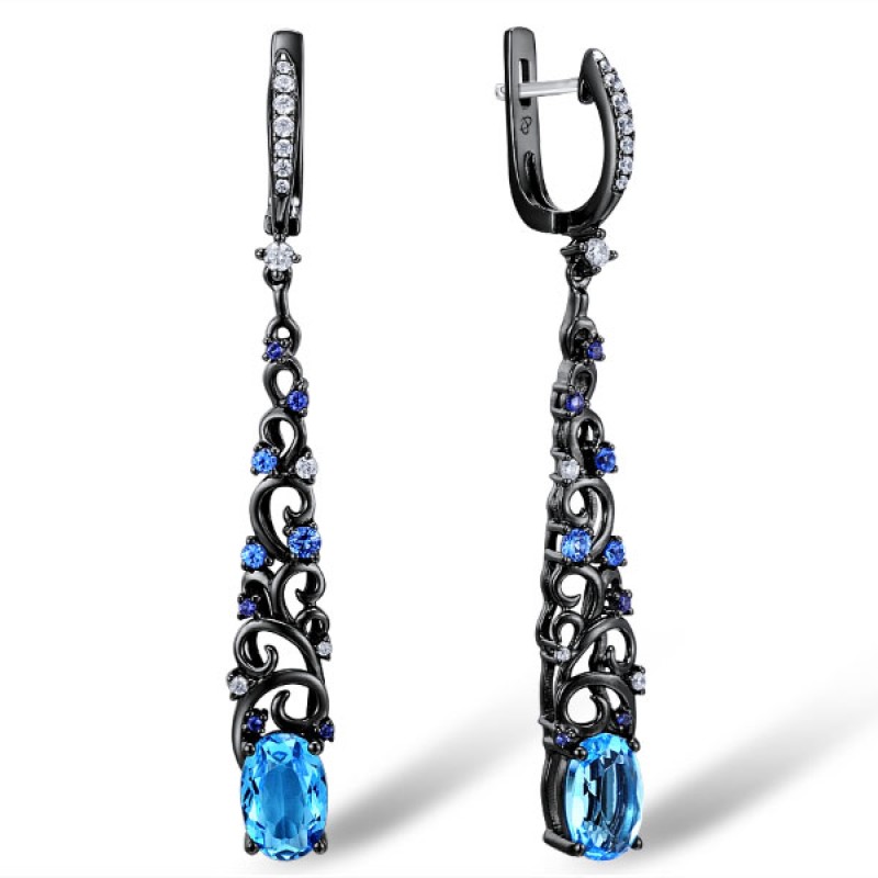 Sterling Silver w/ Black White Plating Earrings Blue Spinel,White Cubic Zirconia,Blue Glass,Blue Nano Cubic Zirconia (E308958MULSK925)