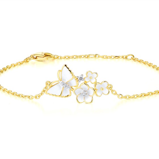 Sterling Silver w/ IONIC YELLOW PLATING Bracelet White Cubic Zirconia,Enamel (B313579SENASP925)
