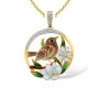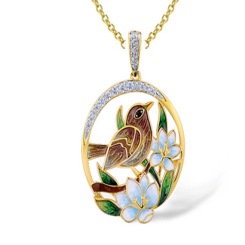 Sterling Silver w/ Yellow Black White Plating Pendant White Cubic Zirconia,Black spinel,Enamel (P314120ENASZ925)