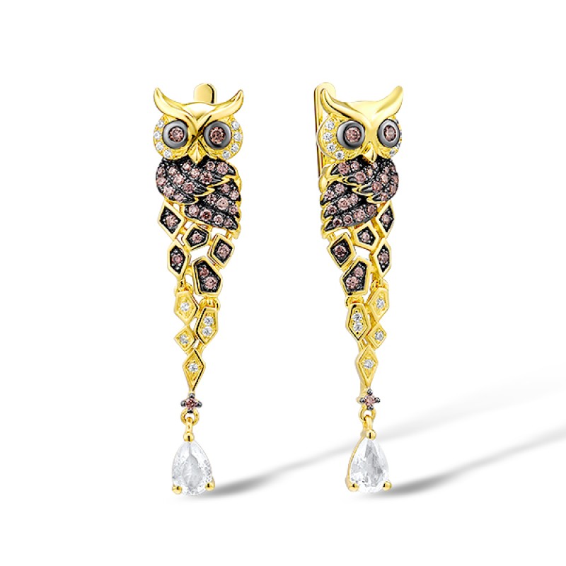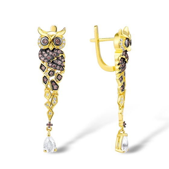Sterling Silver w/ Yellow Black Plating Earrings Chocolate CZ,White Cubic Zirconia,White Glass (E312947SCWZGSC925)