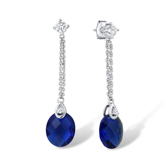 Sterling Silver Earrings Blue Glass,White Cubic Zirconia (E304200BLGZSL925)