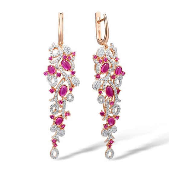 Sterling Silver w/ IONIC ROSE PLATING Earrings Created Ruby,White Cubic Zirconia (E305155SCRZSQ925)