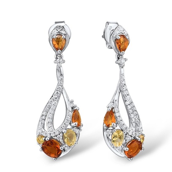 Sterling Silver Earrings White Cubic Zirconia,Yellow Cubic Zirconia,Yellow Glass (E307247MULSL925)