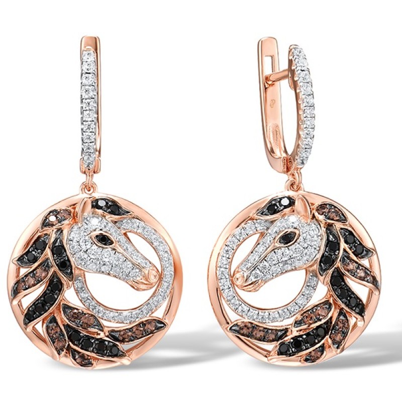 Sterling Silver w/ Rose Black White Plating Earrings Black spinel,Nano Brown Spinel,White Cubic Zirconia (E307309SCWZSV925)
