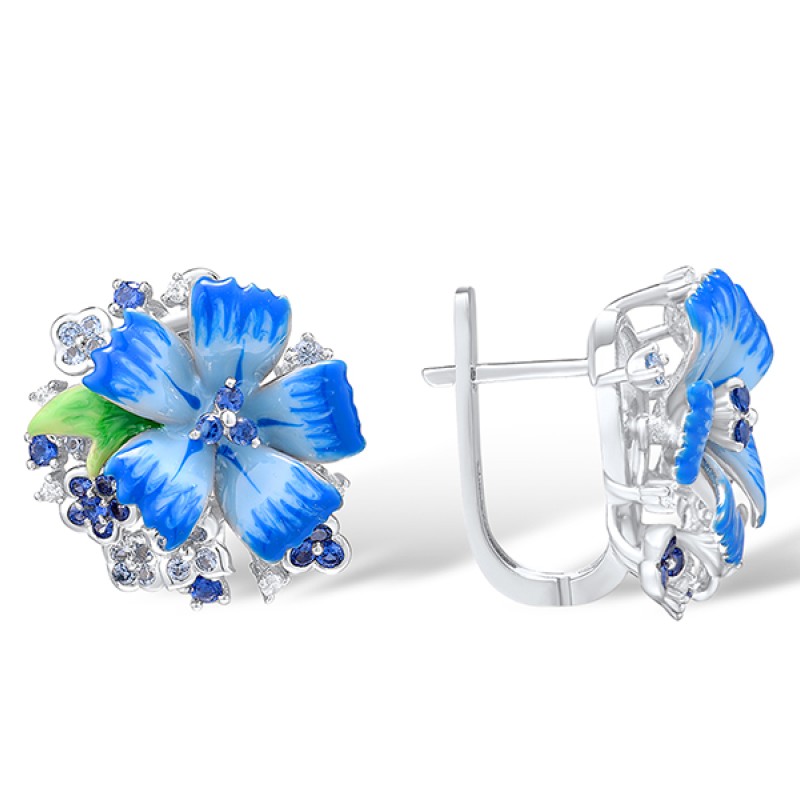 Sterling Silver Earrings Blue Nano Cubic Zirconia,Blue Spinel,Enamel,White Cubic Zirconia (E308561ENA2SL925)