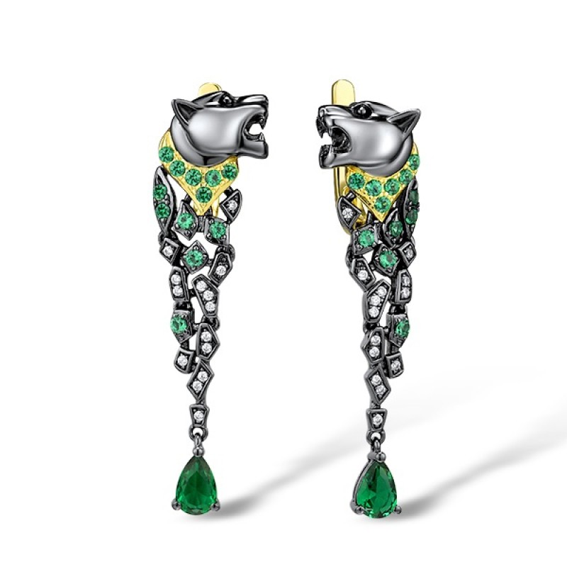 Sterling Silver w/ Yellow Black Plating Earrings Green Glass,Green Spinel,White Cubic Zirconia (E312946SGGNZSC925)