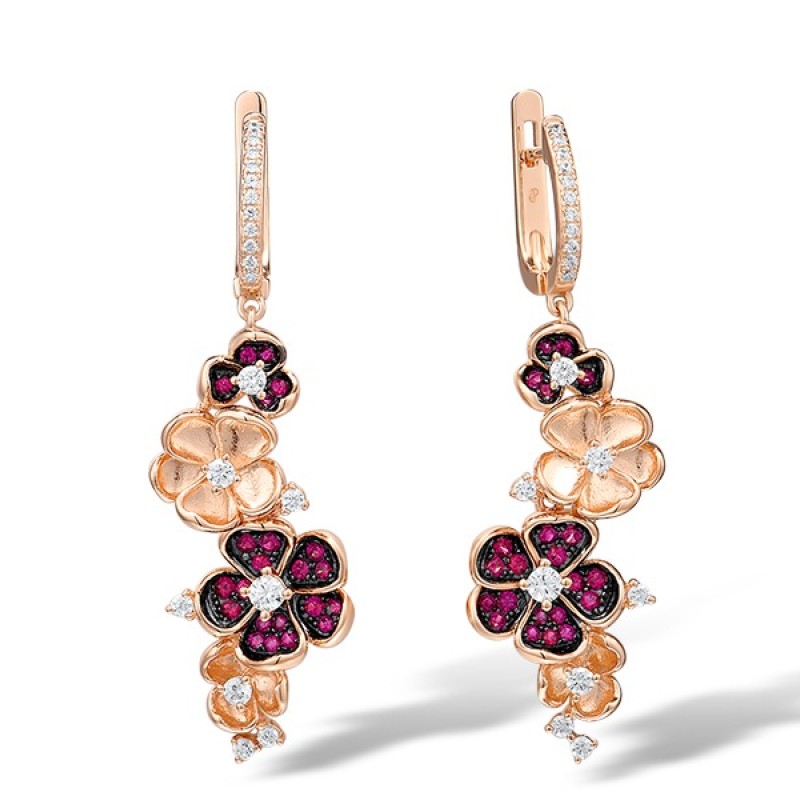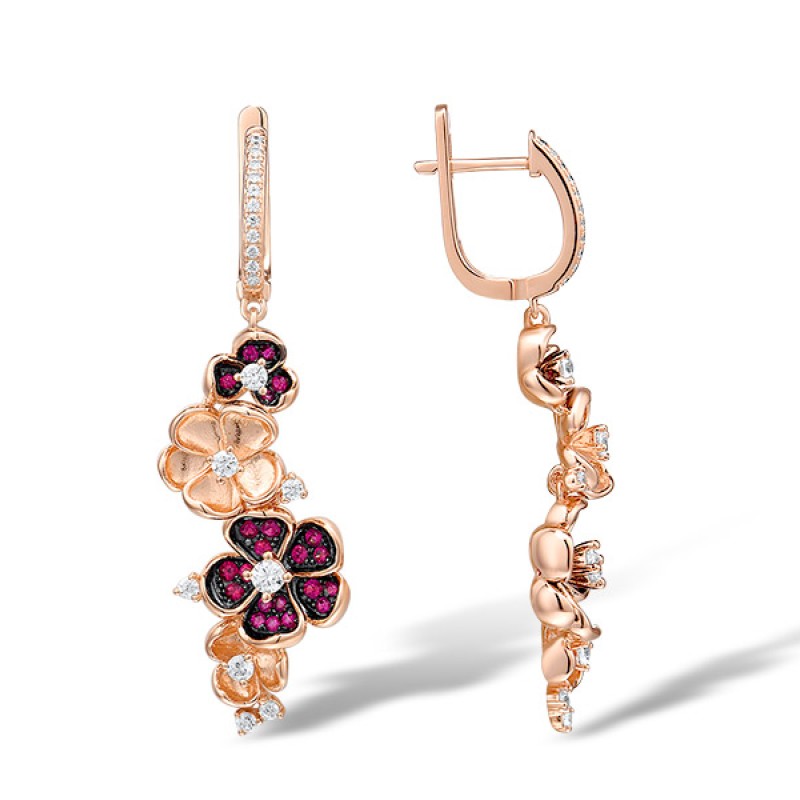 Sterling Silver w/ Rose Black Plating Earrings Created Ruby,White Cubic Zirconia (E315638CRZSD925)