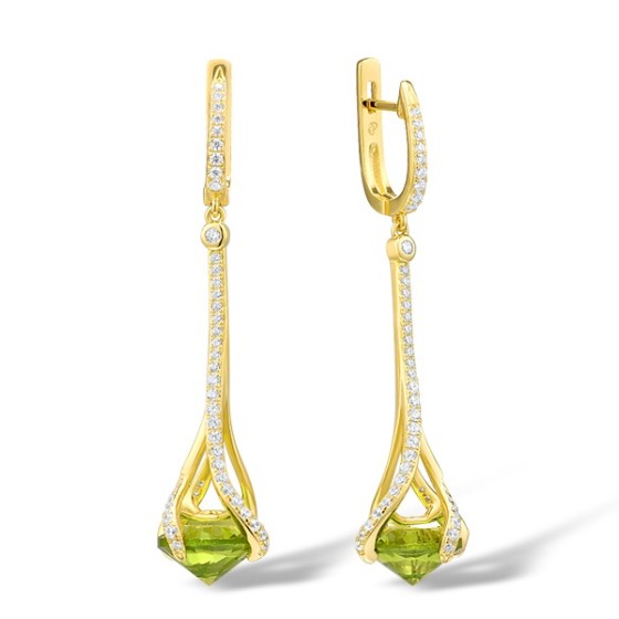 Sterling Silver w/ Yellow Plating Earrings Green Glass,White Cubic Zirconia (E316059GRGZSY925)