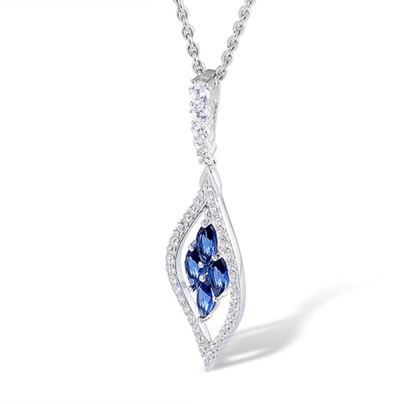 Sterling Silver Pendant Blue Glass,White Cubic Zirconia (P303664BLGZSL925)