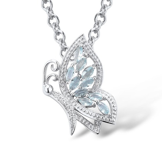 Sterling Silver Pendant Blue Glass,White Cubic Zirconia (P305760BLGZSL925)