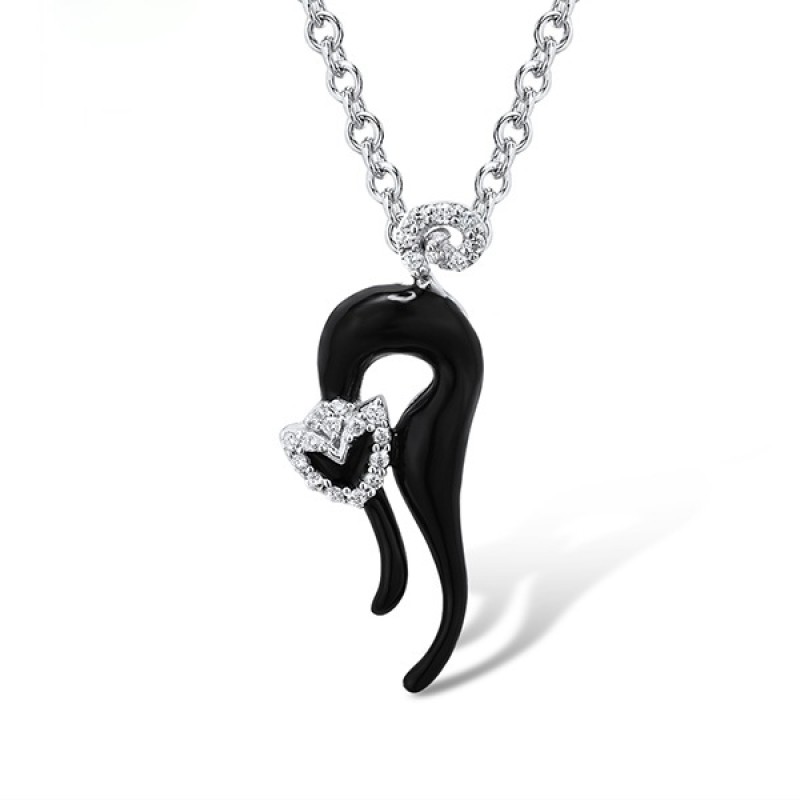 Sterling Silver Pendant Enamel,White Cubic Zirconia (P306285ENASL925)