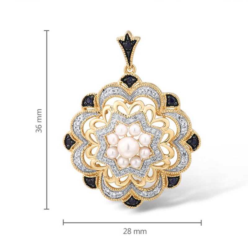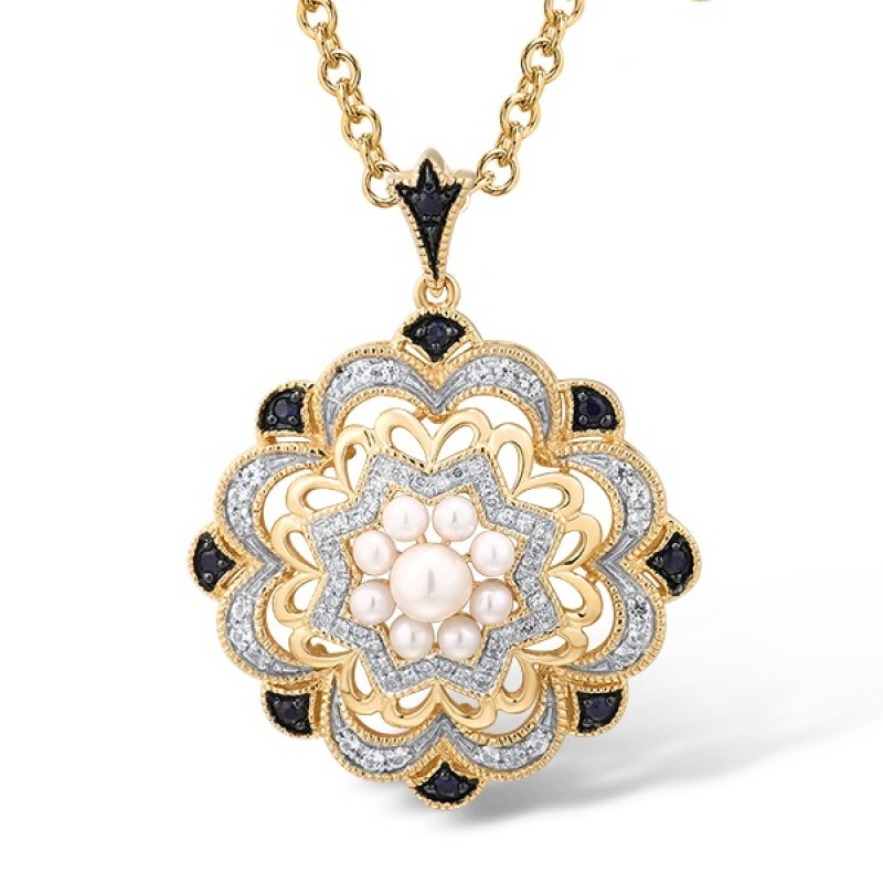 14KYWB Pendant Blue Sapphire,Diamond,Fresh Water White Pearl,White Sapphire (P314203FSWS14KYWB)