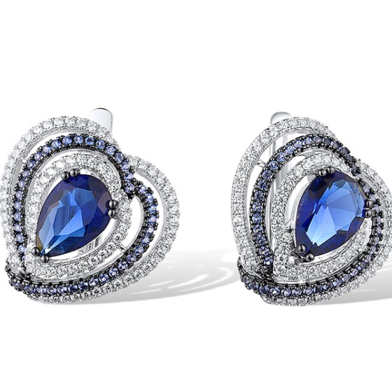 Sterling Silver w/ Black White Plating Earrings Blue Glass,Blue Nano Cubic Zirconia,White Cubic Zirconia (E315804BNBZSK925)