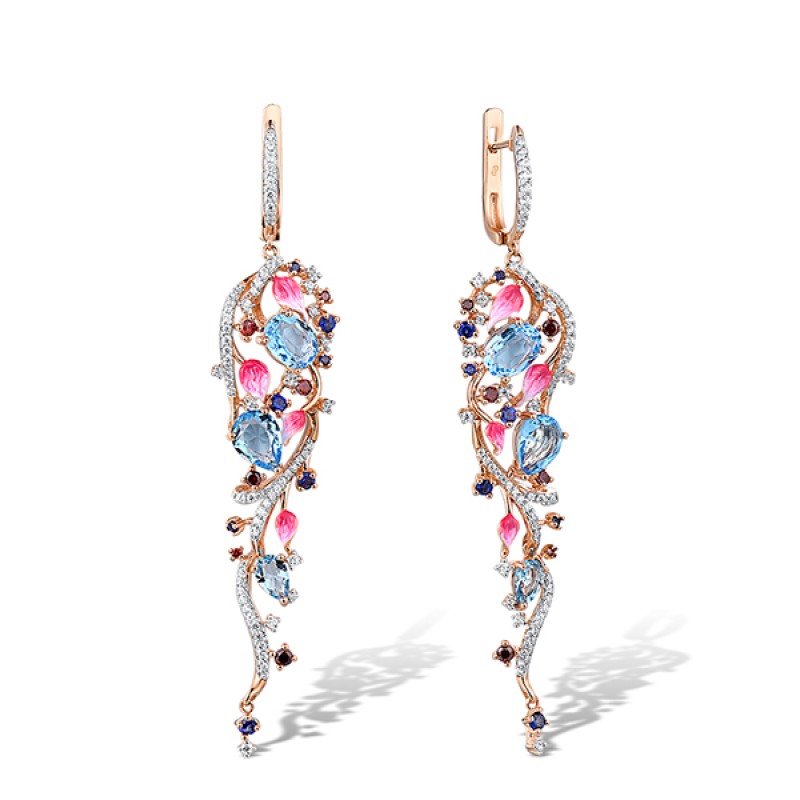 Sterling Silver w/ IONIC ROSE PLATING Earrings Blue Glass,Created Sapphire,Enamel,Garnet Cubic Zirconia,White Cubic Zirconia (E306773ENASQ925)