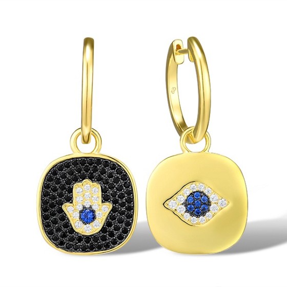 Sterling Silver w/ Yellow Black Plating Earrings Black spinel,Blue Nano Cubic Zirconia,White Cubic Zirconia (E316085BSNZSC925)