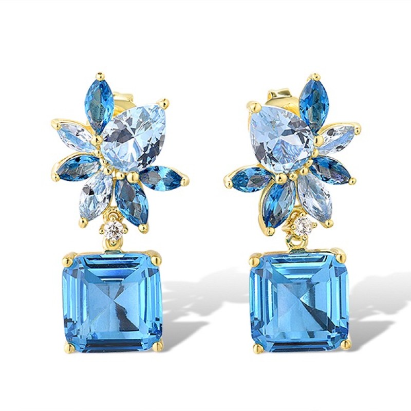 Sterling Silver w/ Yellow Plating Earrings Blue Glass,Blue Spinel,White Cubic Zirconia (E315984BGNZSY925)