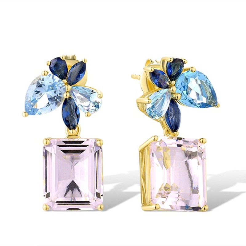 Sterling Silver w/ Yellow Plating Earrings Blue Glass,Pink Glass (E315983BPI1SY925)