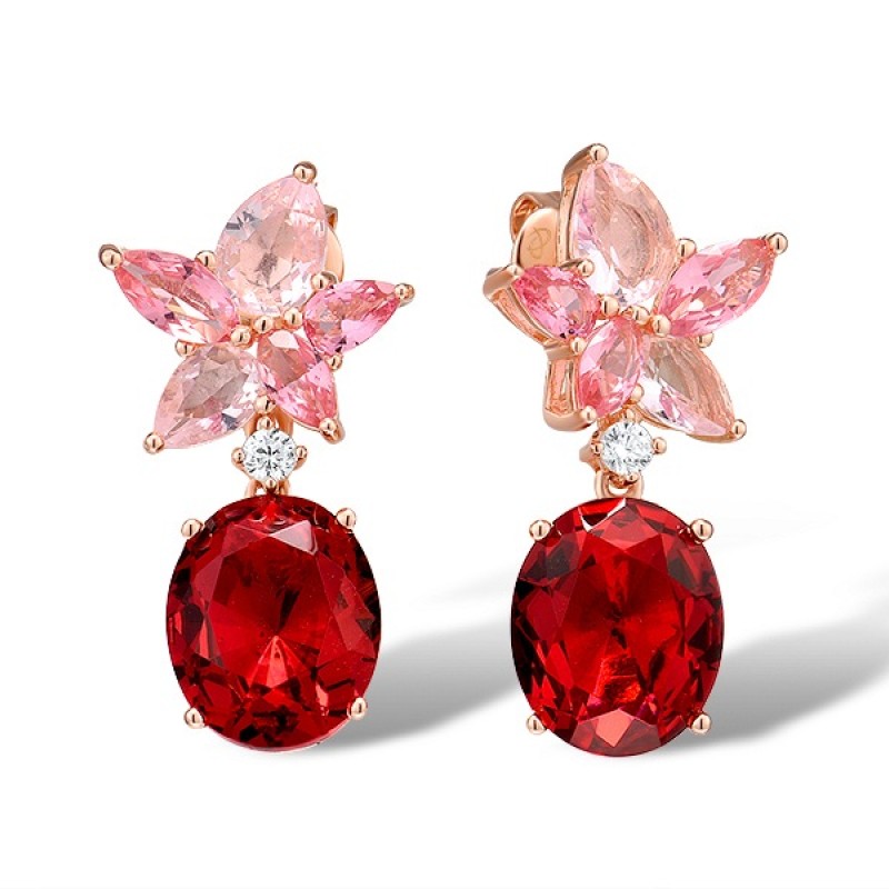 Sterling Silver w/ Rose Plating Earrings Pink Glass,White Cubic Zirconia (E315982PIGZSR925)