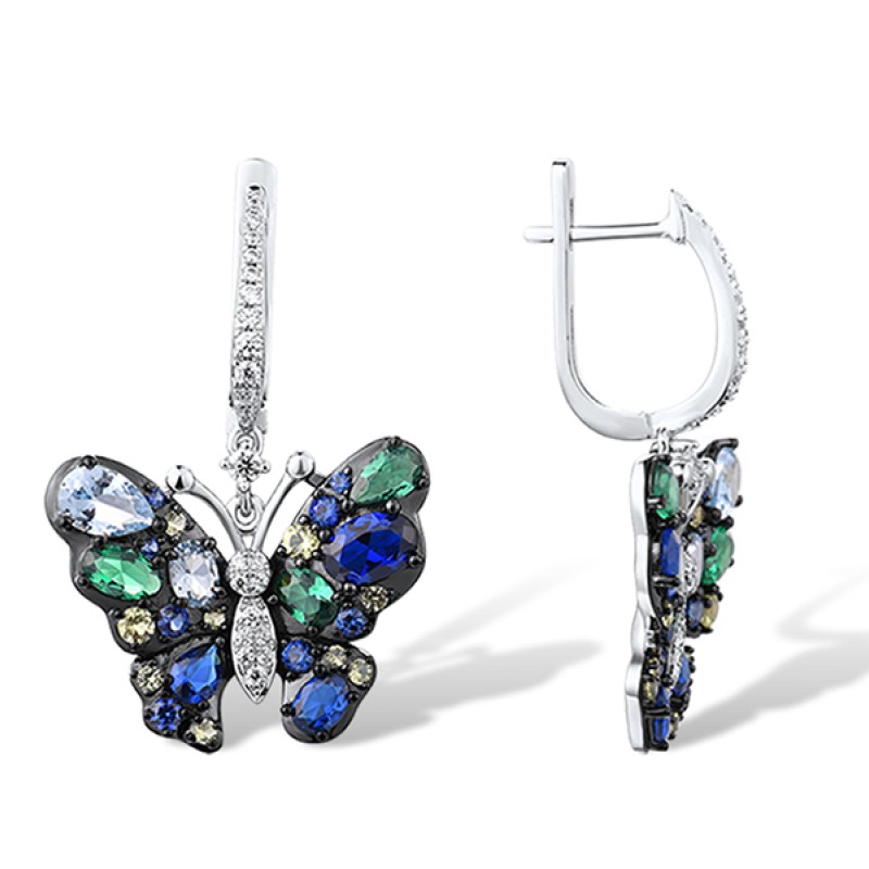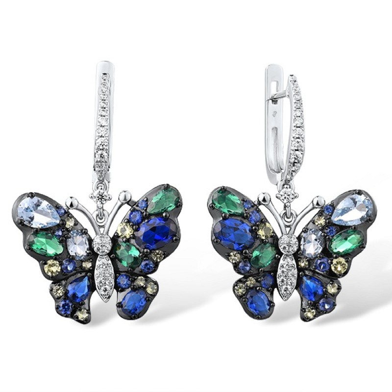 Sterling Silver w/ Black White Plating Earrings Blue Spinel,Created Sapphire,Green Nano Cubic Zirconia (Per,Green Spinel,White Cubic Zirconia (E315805MULSK925)