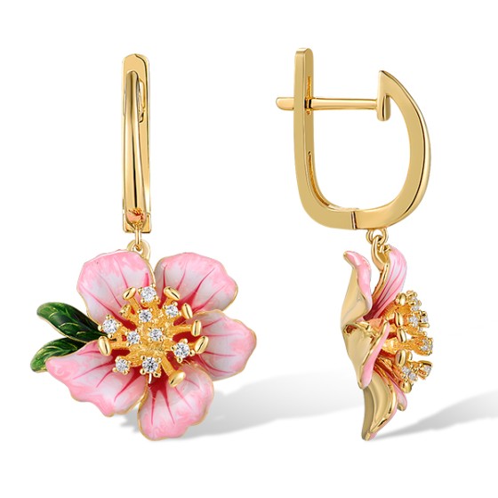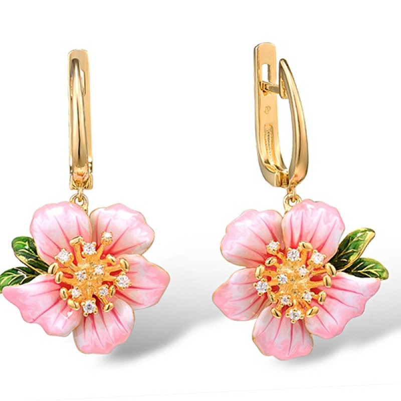 Sterling Silver w/ Yellow Plating Earrings Enamel,White Cubic Zirconia (E315795ENASY925)