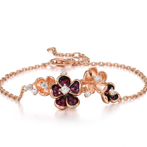 Sterling Silver w/ Rose Black Plating Bracelet Created Ruby,White Cubic Zirconia (B315638CRZSD925)